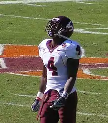 He played 13 games with 11 starts in 2007, earning first-team All-Atlantic Coast Conference honors and second-team All-America accolades from The NFL Draft Report, he posted career highs in receptions (33–496) and receiving touchdowns (4). He led the ACC and ranked 10th in the nation with a 14.7-yard punt return average (31–455) and scored two touchdowns on punt returns. He added 14 kickoff returns for 316 yards (22.6 avg.) and eight rushes for 112 yards (14.0 avg.).[13] Finishing with 1,379 all-purpose yards (106.1 ypg.), he finished first in career all-purpose yards in school history (4,686).[14] He was also the Atlantic Coast Conference's (ACC) all-time leader in punt return yards (1,296). Royal received second-team All-ACC honors in 2006 and first-team All-ACC honors in 2007. The Hokies won the Coastal division and secured a bid the 2007 ACC Championship Game in Jacksonville, Florida, there, they faced a rematch with Boston College, champions of the Atlantic Division. Matt Ryan was unable to seize the victory with two fourth-quarter interceptions, sealed the Hokie win and an automatic bid to the Orange Bowl game. Royal finished the game with four receptions, 63 yards, and one touchdown.[15] He also played in the 2008 Orange Bowl against Kansas.[16]