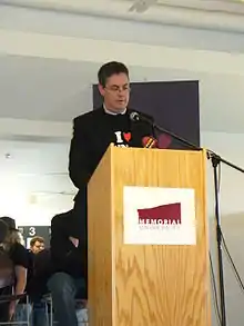 Campbell speaking at Memorial University of Newfoundland for the opening of "I Love MUNdays" in 2007.