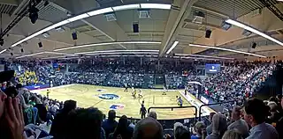 In addition to basketball, in December 2015, a professional boxing event took place, including a fight between Jack Culcay-Keth and Dennis Hogan for the WBA interim championship super welterweight place.[11] In May 2016, the Inselparkhalle was the venue of the 2016 European Darts Matchplay event.[12] In August 2016, teams competed in the 2018 Wheelchair Basketball World Championship.[13][14] On 30 October and 1 November 2016, the first official international matches of the German futsal national team took place in the hall.[15]