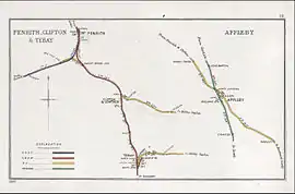 Prior to the construction of the Eden Valley Railway, in the 1840s, several schemes had been proposed which would have run to the Eden Valley; one was the York & Carlisle Junction Railway,[1] backed by the Great North of England Railway, which would have run from Northallerton to Barnard Castle then across the Pennines to Kirkby Stephen, after which two branches would have been formed to connect with the Lancaster and Carlisle Railway; one to Tebay and the other to Clifton.[2] Another similar scheme was the Northumberland & Lancashire Union which would have run from Gateshead near Newcastle upon Tyne to Barnard Castle, and then as the York & Carlisle line across the Pennines via Kirkby Stephen to Tebay.[1] Additionally the Yorkshire and Glasgow Union Railway was planned to run west from Thirsk through Wensleydale to Hawes, then north through the Mallerstang Valley to Kirkby Stephen, and then through the Eden Valley to Clifton via Appleby-in-Westmorland.[1][2] Both the Yorkshire & Glasgow Union and part of the York & Carlisle Junction to Tebay were empowered by acts of Parliament in 1845[3] but the end of the Railway bubble of the 1840s meant that they were not built.