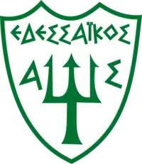 Edessaikos is a football club based in Edessa Greece. It was founded in 1960 when three local clubs – Aris, Iraklis, Ethnikos – merged.[1] Edessaikos was a founding member of the Pella Football Clubs Association in 1971.[2] The club has participated in the Greek Football A Division between 1993 and 1997. From 2010 to 2017, Edesaikos competed in the A1 League of Pella (fifth tier overall), after getting relegated from Delta Ethniki during the 2009–10 season. Edessaikos also has a well-organised youth academy system. Edessaiko's academies the season 2011–2012 was champions of the 1st group of Pella on 98–97 ages.