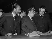 Edgar G. Brown, left, with Leon Henderson and Donald Gordon