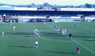 Hereford FC's record attendance for a home game at Edgar Street was 4,683, for a 1–0 win in the FA Vase semi-finals against Salisbury on 13 March 2016,[3] until the club's FA Cup first round match against Portsmouth in November 2022 attracted a crowd of 4,912.[4] It hosted Hereford FC's televised FA Cup second round replay against Fleetwood Town in December 2017.[5] The 2020–21 FA Trophy semi-final between Hereford FC and Woking was also played here, although it took place behind closed doors due to the COVID-19 pandemic, in which Hereford won 1–0 to make the final.