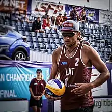 He then decided to pair with Mārtiņš Pļaviņš and competed in international competitions since December 2017.[5][6] He paired along with Mārtiņš Pļaviņš won the Dela Beach Open in January 2018 which was part of the 2018 FIVB Beach Volleyball World Tour.[7][8] In July 2019, he along with Mārtiņš Pļaviņš had a third-place finish in the Espinho Open which was part of the 2019 FIVB Beach Volleyball World Tour.[9] He was awarded the Latvian Beach Volleyball Male Player of the Year in 2019 by the Latvian Volleyball Federation.[3]