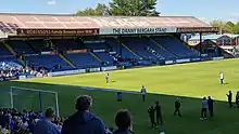 The Cheadle End behind the goal at the west end of the ground is the largest and most modern stand in the stadium, and one of the largest stands outside the Premier League.
