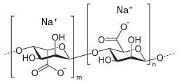 Alginates are the natural product of brown algae and have been used extensively in wound dressing, drug delivery and tissue engineering, as well as food applications.[9][10][11] Sodium alginate is an unbranched copolymer of 1,4-linked-β-d-mannuronate (M) and α-l-guluronate (G) sugars.
