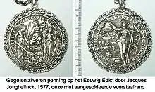 The Edict of 1577 (also known as the Perpetual Edict or the Eternal Edict[1][2][3][4][5]) was signed on 12 February 1577[1] in Marche-en-Famenne by the new Spanish governor-general of the Habsburg Netherlands, Don John of Austria. This accord provided for the removal of Spanish forces from the Netherlands.[6][7] In addition, the edict agreed to uphold the tenets of the Pacification of Ghent in exchange for an understanding that the States General would uphold the monarchy and Catholicism.[1] The edict was initially well received.[1] However, in July 1577, Don John began plans for a new campaign against the Dutch rebels. Elizabeth I approved of both the Pacification of Ghent and the Edict of 1577, therefore offering loans and military aid to the Dutch. When it became clear that John would go back on his agreement, Elizabeth planned to defend the provinces with aid of £100,000 and troops against John if he attacked.[6][7]