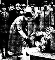 Edith Hughes-Jones on the 11th anniversary of the sinking of the Centaur in 1954 laying a wreath on the Edith Cavell memorial in Melbourne