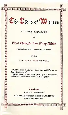 - ↑ Edith Gell, Under Three Reigns: 1860-1920, London: Kegan Paul, Trench, Trubner & Co., Ltd., 1927. pp. 61-62