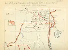 In 1888 van Eetvelde defended the interests of the Congo Free State in front of José Vicente Barbosa du Bocage, the Minister of Foreign Affairs of Portugal who claimed the territories of the former Kingdom of Lunda for the colony of Angola. The Portuguese eventually accepted the Kwango River as a boundary above 8°S latitude, from which point the boundary runs east to the Kasai River.[5]