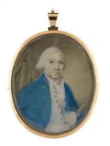 In 1784 he bought Fingringhoe Hall in Essex. He died at his London house on 19 November 1788.[3] He had married twice; firstly widow Hester Creffeild (née Hester Ruth) and secondly widow Margaret Smythies. He had only a daughter Charlotte and thus Fingringhoe Hall passed to the 2nd Baronet, Gilbert.[4]