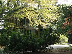 The Edmund Dwight House is a historic house at 5 Cambridge Street in Winchester, Massachusetts, straddling the town line with Arlington. It was built in 1858 in an Italianate style. It was one of the first and grandest country houses built in Winchester at a time when Boston businessmen were seeking to build such houses. Edmund Dwight, the wealthy businessman who was its first owner, was married to a great-granddaughter of Thomas Jefferson. The house's design is believed to be based loosely on that of Jefferson's Monticello. The house is sited for an expansive view of the Upper Mystic Lake.[2] This residence was also home to Claude Shannon, the father of Information theory, and his wife Betty Shannon. While living there, they installed a chair lift that took the rider from the home down to the lake.[3][4]
