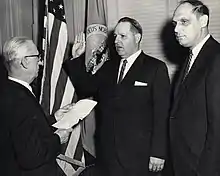 Boston police commissioner Leo J. Sullivan resigned on March 15, 1962, after a bookmaking scandal revealed by the CBS Reports documentary Biography of a Bookie Joint rocked the department.[4] The scandal also caused the Massachusetts General Court and Governor John A. Volpe to transfer control of the department from the Governor of Massachusetts to the Mayor of Boston On April 5, 1962, Volpe officially ceded control and Mayor John F. Collins sent a cable from Italy, where he was vacationing, to confirm McNamara's appointment as commissioner. McNamara submitted his resignation to Boston's special agent in charge Leo L. Laughlin that day and assumed control of the department on a temporary basis. On May 1, he received a full five-year appointment to the position. McNamara was the first career law enforcement officer to serve as Boston police commissioner in the twentieth century.[5]