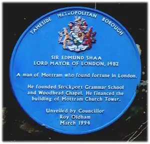- 1 2 3 "Sir Edmund Shaa – Blue Plaque". Tameside MBC webpages. Tameside MBC. Archived from the original on 30 August 2006. Retrieved 22 October 2006.