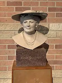 In 2019, the Gladney Center was excited to unveil a very special bronze bust of Mrs. Gladney by artist Linda Stinson. Stinson has art pieces in museums and hall of fame galleries throughout the United States. After collecting many photos and reading Edna's life story, Linda began the long creative process of sculpting Edna in the summer of 2018.[11]