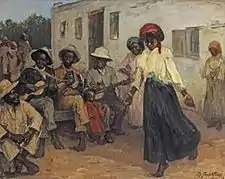 Eduard Frankfort remained in Amsterdam until 1905. Many of his paintings featured Jewish religious themes. Like other contemporary artists, Frankfort was drawn to Laren. In 1903, he was awarded a gold medal by the Royal Art Society "Arti et Amicitiae". He was highly regarded at that time and was asked to teach at several schools. In 1905, he followed his sister to South Africa, where he toured and painted portraits. One such portrait he did during this time was of Esther de Boer-van Rijk.