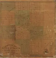 On February 16, 1853, the Atlanta city council approved Vincent's proposal to produce a map of that city.[5] It was completed by November 18, 1853, because the city council resolved that copies should be sent to the mayors of Georgia's other major cities.[6]