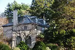 The Edward B. Stratton House is a historic house at 25 Kenmore Street in Newton, Massachusetts. It is a two-story stucco-clad structure, with a dormered hip roof. It has a Colonial Revival entrance with fluted pilasters supporting a decorated entablature and broken-gabled pediment. To either side of the entrance, single-story wings project forward, creating an entrance court; the windows of the wings have arched windows. The house was designed by noted regional architect Edward B. Stratton and built in 1912 as his family residence. The building features an eclectic mix of Colonial Revival and Craftsman styling.[2]