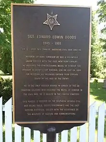 Edward Edwin Dodds (c. 1845 to January 12, 1901) was a Canadian soldier who fought with the Union Army as a member of the 21st New York Cavalry during the American Civil War. He received the United States' highest award for bravery during combat, the Medal of Honor, for his actions at Ashbys Gap, Virginia on July 19, 1864. That award was conferred on June 11, 1896.[1][2]