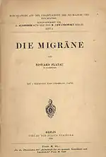 In 1912, he published in German and Polish one of the first modern monographs in the 20th century about migraine headaches[38] which is still referenced in scientific literature. It was the first Polish textbook devoted to migraine. In a review of the historical background of general aspects of the headaches, Isler and Rose say, "His unique monograph of 1912, Die Migrane, contains a thoroughly structured survey of most earlier authors, precise clinical observations, a critical evaluation of pathophysiology, and uncritical opinions on treatment, including arsenic cures."[39] In his monograph, Flatau presented the full clinical picture of migraine and described the disease as an innate disposition to pathological metabolic processes in the nervous system and described its distinguished characters – ocular, epileptic, mental and facial. The book was based on observations of himself and about 500 cases from his own practice.[40]