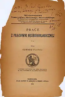 The Institute of Experimental Biology of Marcel Nencki was established in Warsaw at the initiative of students and colleagues of Marceli Nencki. At the end of 1918, Kazimierz Białaszewicz, along with Edward Flatau and Romuald Minkiewicz, head of just created Department of General Biology (Zakład Biologii Ogólnej) applied to the board of the Warsaw Scientific Society with an initiative to separate these three laboratories and create an organization under the name of "Institute of Experimental Biology. Marcel Nencki". Flatau headed the Laboratory of Neurobiology, between 1911 and 1923.[57]