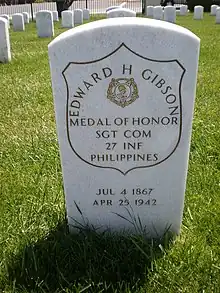 Edward Herrick Gibson[1] (July 4, 1872 – April 25, 1942) was a United States Army Sergeant received the Medal of Honor for actions during the Philippine–American War. He was awarded the Medal for the same action as Corporal Antoine Gaujot. The Medal was received for actions on December 19, 1899, at the Battle of Paye near Mateo during the Philippine–American War. Gibson is buried in Golden Gate National Cemetery in San Bruno, California.[2]
