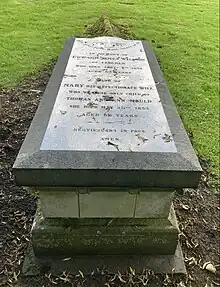 Willson died at Lincoln on 8 September 1854. He had married, in 1821, Mary, daughter of Thomas Mould of Snarford and Hainton and who was related to the Heneage family.[6] By her he had two surviving sons.[2] One of his sons, Thomas John Willson (1824-1903), also became a successful architect in London, mainly building Roman Catholic churches.[7] Edward Willson and his wife, who died the year before him, were both buried at Hainton. He trained Frederick James Jobson as an architect before Jobson embarked on a career in the Methodist ministry. Jobson praised his works and writings as contributing to the Gothic Revival, particularly in Lincolnshire.[8] Also the notable Pre-Raphaelite painter James Smetham was articled to Willson in the 1830s.[9]