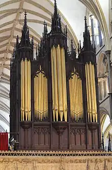 The importance of Willson as an Architectural historian was recognised by Nikolaus Pevsner in 1972.[10] Initially, Willson had been collecting material for a history of Lincoln and Lincolnshire. This was published in 1816 with a dedication to Lady Monson, under the title The History of Lincoln; containing an account of the Antiquities, Edifices, Trade, and Customs, of that Ancient City; an introductory sketch of the County; and a description of the Cathedral.[11] By 1818 he had supplied his friend John Britton with accounts of Lincoln Cathedral, Boston church, St Peter's, Barton on Humber, and Beverley Minster for volume 5 of Britton'sArchitectural Antiquities, although this volume was not published until 1826.[12] Willson also contributed to Britton's Cathedral Antiquities (1814–35) and Picturesque Antiquities of English Cities (1830). As a result of his association with Britton Willson became a member of the Architects and Antiquaries Club in 1819. Amongst the members of the club was Augustus Charles Pugin[13] This resulted in Willson writings the text to Specimens of Gothic Architecture, with illustrations by Pugin which was published in two volumes in 1821 and 1822.[2] He then wrote jointly with Pugin Examples of Gothic Architecture, consisting of Plans, Sections Elevations and Details which was published in two volumes in 1830 and 1836. Following his death in 1854, John Britton wrote a lengthy obituary on the career and work of Willson, with an appraisal of numerous books written by him. This was published in the Builder.[14]