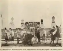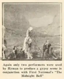 Before the start of his features, Hyman would often produce an elaborate musical or dance number on stage. Prologues were frequently used in theatrical productions, but it was rare for them to be used in conjunction with motion pictures. His productions were universally liked by his patrons, which caused him to realize the importance of music in his programming. Additionally, many silent films were hard to follow, so the prologues helped explain the plot to the audience. Pictures of his prologues are included below along with original text published in the Exhibitor's Trade Review.[5]