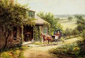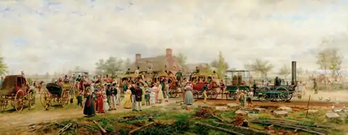 As a painter of colonial and early American themes and incidents of rural life, he displays a quaint humor. He was best known for themes involving transportation, especially railroads, but also stage coach and canal boat journeys, among other means, all rendered in minute detail.[4]
