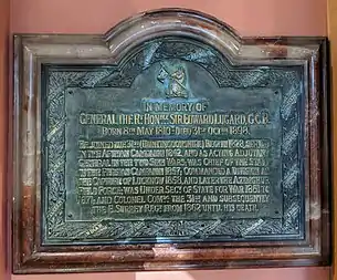 After nearly three decades in India, Lugard returned to the United Kingdom in 1859 where he served as Permanent Under-Secretary of State for War at the War Office from 1861 to 1871.[5] Advanced to Knight Grand Cross of the Order of the Bath in March 1867,[8] he became a Privy Councillor in November 1871[9] and was promoted to the rank of General in November 1872.[10]