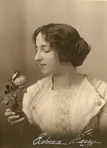 From 1909 until at least 1915, Barry toured the United States with her own company, Miss Edwina Barry and Co., as the star of the serio-comic sketch "The Home Breaker," which was written by her brother, Jimmy Barry.[4][5] In the sketch, Barry played Dotty Plumdaffy, a servant girl who kisses men and then keeps their photograph, and in doing so, almost causes the breakup of a marriage.[6][3]
