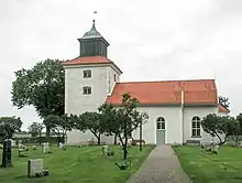Egby Church is the smallest church on Öland. The present stone church was probably preceded by a wooden church. The oldest parts of the present building are the apse, parts of the choir and the southern wall of the nave, dating from the 12th century. The church was rebuilt during the late 12th and early 13th century into a fortified church. At the middle of the 13th century, the church porch was probably also added. The sacristy is furthermore medieval. The church was quite heavily rebuilt during a renovation which began in 1817 and which wasn't finished until the 1830s. During this time the church tower was added (1818) and the interior redecorated. The church was renovated in 1959.[1][2][3] Easily visible from sea, the church is a known landmark for mariners.[4][5]