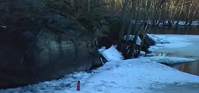Egg Rock is an outcrop of Silurian Straw Hollow Diorite[1][2] at the confluence of the Assabet and Sudbury rivers, where they form the Concord River in Concord, Massachusetts. The outcrop is located on a roughly oval intermittent island of about 100 by 50 meters. Egg Rock is usually accessible using foot trails over land, but during high river levels the island is separated from the mainland by a narrow channel. The highest point of Egg Rock is about 39 meters above mean sea level and about 6 meters above normal river level.