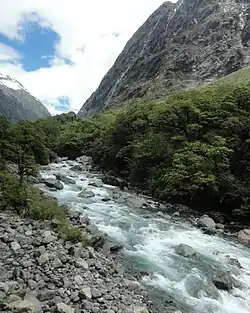 For much of its length the Eglinton is accompanied by the only road in the region, State Highway 94 from Te Anau to Milford Sound.[1] The southern end of the Milford Track is located close to the Eglinton River.