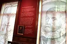 The museum was opened in 2018 for the commemoration of the 450th anniversary of the beheading of Lamoral on Grand-Place/Grote Markt in Brussels in 1568.[2] It showcases different historical Egmont items such as paintings, etchings, coins and floor tiling from Egmont's castle.[3] Furthermore, several objects from Egmont's crypt are shown, such as the 16th-century burial plaque of his wife Sabina, the plaque dating from the rediscovery of the crypt in 1804, the embalmed hearts of Lamoral and his sons Charles and Philip and 3D prints of Egmont's and Sabina's skulls.[4][5][6]