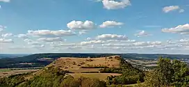 The Ehrenbürg is a double-peaked butte on the edge of the Franconian Jura in Bavaria, Germany. It is in the district of Forchheim in Upper Franconia, in the municipalities of Kirchehrenbach, Leutenbach and Wiesenthau. The north peak is the 513.9 m Walberla, the south peak the 531.7 m Rodenstein[1] (previously known as the Bodenstein). The hill is popularly known as the Walberla.