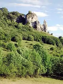 On the eastern edge of the Walberla are the Zwillingsfelsen ("Twin Rocks"). This rock pinnacle is also entirely independent of the neighbouring rock face and will probably collapse. It is designated as a geotope.[7]