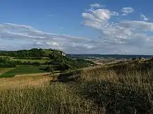 The Ehrenbürg is located in the west of the twin natural protected areas of Ehrenbürg and Katzenköpfe, designated under the Habitats Directive of the European Union, and which are coterminous with the local extent of the bird protection area (Important Bird Area) Felsen- und Hangwälder in der Fränkischen Schweiz (cliffs and forested slopes of Little Switzerland). In addition, it is part of the western section of the Protected area Little Switzerland and Veldenstein Forest, which was founded in 2001 and comprises 1,021.64 km2. The dry grassland habitat and rare plants, particularly orchids, caused the hill, in particular its higher parts, to be designated in 1987 as the Ehrenbürg Nature Protection Area,[4] which is 1.55 km2 in area, extending a maximum of approximately 2.3 km from north to south and 1 km from east to west.