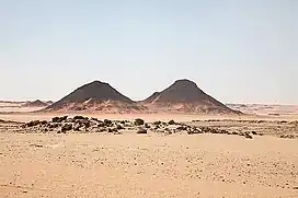 Eight Bells Hills or Thamaniyat Ajras (Arabic: ثمانية أجراس) is a topographic outlier of the Gilf Kebir plateau in the extreme southwestern corner of Egypt. The site, a NW–SE striking line of eight flared hills of Palaeozoic sandstone, is located in the New Valley Governorate at an elevation of 731 m.[1]