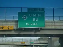 8 Mile Road exit sign on I-75, at 7 Mile Road in Detroit