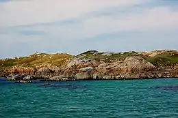 The island is located around one km east of Arranmore and North-West of Inishcoo, another small island divided by narrow channels from Rutland and the mainland. A footbridge connects the two islets, both known for pleasant sandbeaches.[3] The inner part of Eighter Island is mainly rocky and the most convenient landing sites are in the southern part of it.[4]