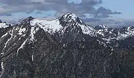 Eightmile Mountain is a 7,996-foot (2,437-metre) mountain summit located in Chelan County of Washington state.[3] Eightmile Mountain is situated within the Alpine Lakes Wilderness, on land managed by the Okanogan–Wenatchee National Forest. It is part of the Wenatchee Mountains which are a subset of the Cascade Range. Its nearest higher neighbor is Cashmere Mountain, 3 mi (4.8 km) to the northeast, and Mount Stuart rises 4 mi (6.4 km) to the south.[1] Precipitation runoff from the mountain drains into Trout Creek and Eightmile Creek, both tributaries of Icicle Creek, which in turn is a tributary of the Wenatchee River. This mountain is known for its spring skiing and excellent view of the Stuart Range.[4]