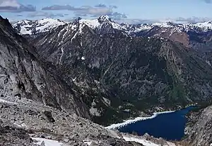 The Alpine Lakes Wilderness features some of the most rugged topography in the Cascade Range with craggy peaks and ridges, deep glacial valleys, and granite walls spotted with over 700 mountain lakes.[5] Geological events occurring many years ago created the diverse topography and drastic elevation changes over the Cascade Range leading to the various climate differences.
