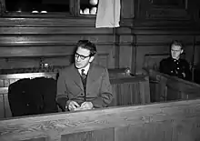 - ↑ "Ole Bernhard Dønnum leser tiltalebeslutningen mot seg selv under rettsaken i april 1946. Angiver. Hirdmedlem. Sønn av avdelingsleder i Staspolitiet Einar Dønnum". digitaltmuseum.no. Retrieved 2022-06-15.