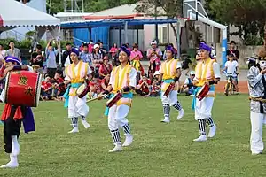 Some examples of creative Eisa clubs include Ryukyukoku Matsuri Daiko and Chinagu Eisa (based in Hawaiʻi). Ryukyukoku Matsuri Daiko, formed in 1982, was one of the first creative Eisa clubs, and has since expanded to form chapters in mainland Japan, Hawaiʻi, the mainland United States, and other locations with Okinawan populations.[6] Whereas traditionally men would dance Eisa utilizing drums, while women would dance drumless, creative Eisa features many females who choose to dance with drums.