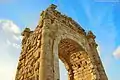 In the early second century CE, Emperor Hadrian, who visited the cities of the East around 130 CE, conferred the title of Metropolis on Tyre: "great city" mother of other cities.[14] Subsequently, a triple-bay Triumphal Arch, an aqueduct from the springs of Ras al-Ain some six kilometers to the South and the Tyre Hippodrome were constructed. The arch was 21 meters high and became the gateway of the Roman town. At its side pillars were erected that were more than four meters high and carried the water canal alongside the road into the town on the peninsula.[15] The hippodrome is the largest (480m long and 160m wide) and best-preserved Roman hippodrome after the one in Rome.[16] The amphitheater for the horse-racetrack could host some 30.000 spectators. During the third century CE, the Heraclia games – dedicated to the deity Melqart-Heracles (not to be confused with the demigod Heracles, hero of the 12 labors) – were held in the hippodrome every four years.[14]