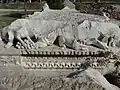 Meanwhile, between the first and fourth centuries CE, one of the largest known cemeteries of the region grew in El Buss with more than forty tomb complexes, at least 825 graves and the physical remains of almost 4,000 individuals.[15] The marble sarcophagi, which were imported from Greece and Asia Minor, and the other tombs of the monumental necropolis spread on both sides of the road leading to the triumphal arch over a kilometer in length.[16] It is unclear how far the burial grounds extended, but researchers argue that large parts of the modern camp could well have been part of the necropolis. Whereas the Phoenician funeral practices of an egalitarian ideology concealed social differences, the Roman graves did the opposite: