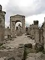 In 395 Tyre became part of the Byzantine Empire and continued to flourish. Likewise, the necropolis in El Bus grew further to be arguably one of the largest in the world, though many graves were "reused".[15] A main road of some 400m length and 4,5m width paved with limestone was constructed there during Byzantine times.[17] Another arch, smaller than the Roman triumphal arch, was erected some 315 meters to the East.[15]