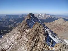 El Diente Peak is a high summit in the San Juan Mountains range of the Rocky Mountains of North America. The 14,165-foot (4,317 m) peak is located in the Lizard Head Wilderness of San Juan National Forest, 10.5 miles (16.9 km) north by east (bearing 8°) of the Town of Rico in Dolores County, Colorado, United States. "El Diente" is Spanish for "The Tooth", a reference to the shape of the peak.[1][2][3]